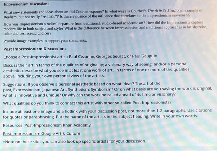 Impressionism Discussion What New Statements And Chegg Com