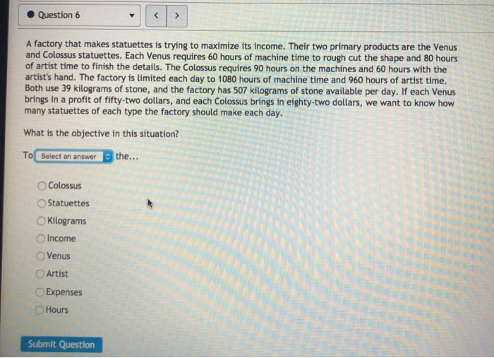 Solved Question 6 Behandon A Factory That Makes Statuettes Chegg Com